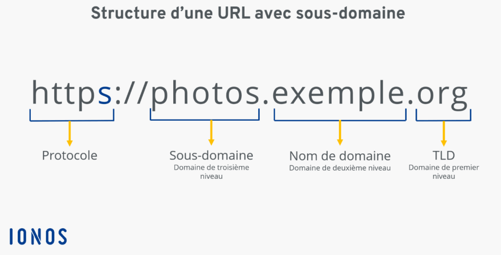 La deuxième composante est le nom de domaine qui est un peu comme l’adresse postale du site web. C’est l’adresse unique du site que l’internaute va entrer dans la barre de recherche pour accéder. Chaque nom de domaine est unique et ne peut pas être partagé entre différents sites. C’est un peu comme le numéro de porte de la maison combiné avec le nom de la rue qui indique au facteur exactement où déposer le colis que vous avez commandé.